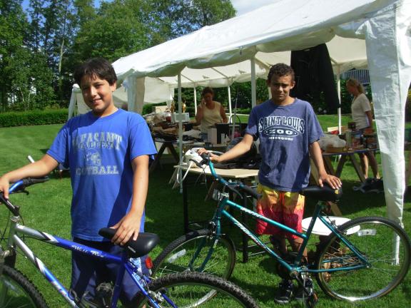 Friends Mack van Schouwenburg of Effort, and Chase Lee, from Jonas, checked out the bicycles for sale at The Garden of Giving rummage sale in McMichaels while their mothers looked at other items. The 11-year-olds are both sixth graders in the PV School District.