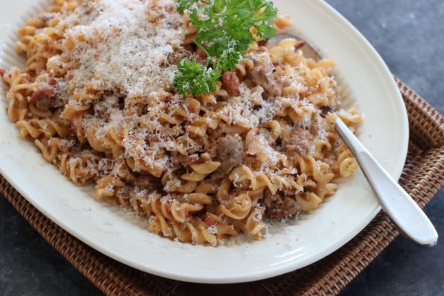 Rotini with Creamy Burger Sauce