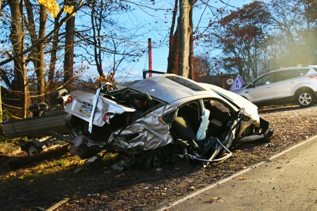 According to reports on the scene, the car was traveling east on South Lake Shore road at an apparent high rate of speed.