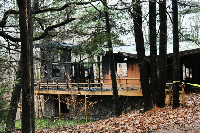A state police fire marshal is examining the ruins of a home destroyed by fire Friday night in Lake Harmony.