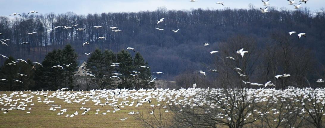 A common sight this time of year, thousands of snow geese take rest in a field just north of New Tripoli in Lynn Township.