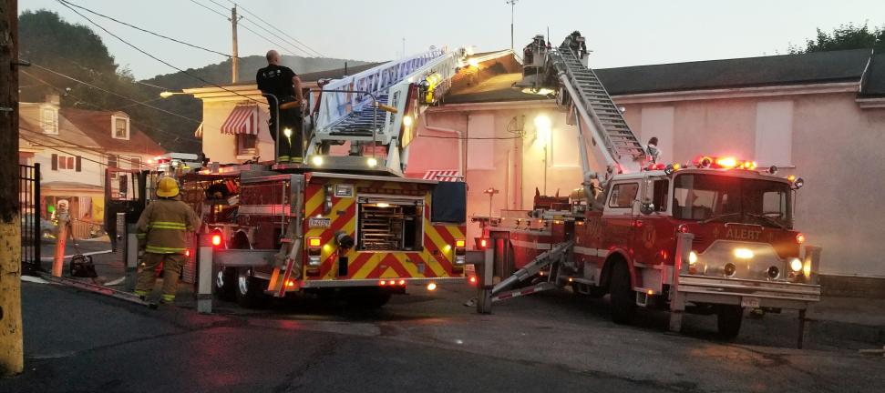 Fire companies from as far as Tamaqua responded to the scene. Firemen were kept busy trying to stop the fire from spreading to two adjacent commercial structures.Â