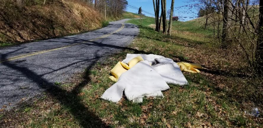 Officials in West Penn township are searching for the person or persons responsible for the dumping of materials along a roadway. Carpeting and matting along with other items were found lying along Orchard road just north of School Drive. Tire tracks were discovered in the soft dirt along the berm of the road.